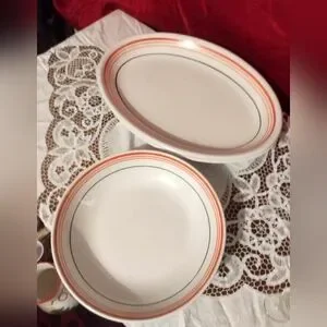Set of 3 matching platters, 2 oval and 1 round. Heavy, good quality feel. Made in Italy.