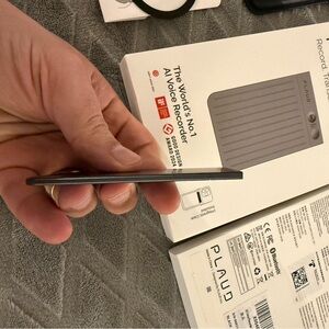 Everything included: Each Plaud AI note taker comes with a 300-minute monthly transcription quota, a magnetic case, a magnetic ring, and a charging cable.