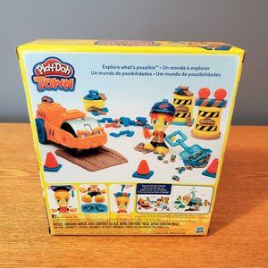 Play-Doh Town construction projects are a flat-out good time with the Steamroller! Get the construction worker ready for a day on the job by pressing out a burly yet colorful beard, and don't forget the hard hat. The figure can also hold the shovel, and the feet stamp a Play-Doh wrench and brick. Build the worksite with the molds on the vehicle and the traffic cone-themed Play-Doh cans. Squish Play-Doh bricks and worksite debris into smooth paved roads for the Play-Doh Town citizens. The steamroller imprints a road texture onto any Play-Doh object it rolls over. Even a day at work in Play-Doh Town can bring heavy-duty fun! Hasbro, Play-Doh and all related properties are trademarks of Hasbro.