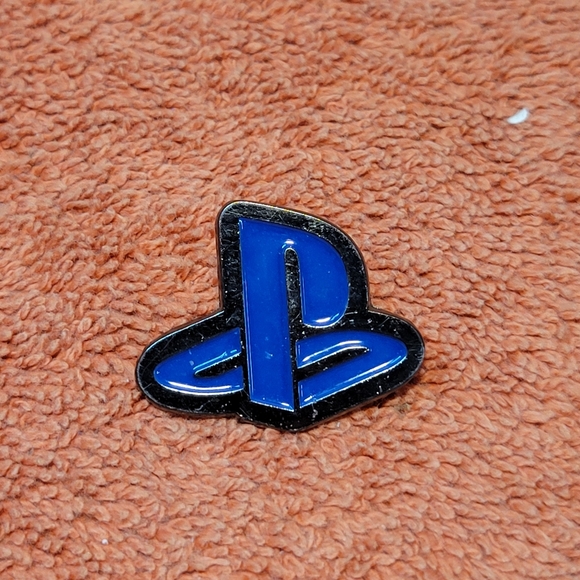 Cool PlayStation logo pin. Has a blue and black design. Pin back is standard. About 3 cm wide. Made in China.