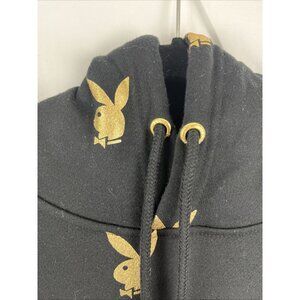 Playboy Black Hoodie w/ Gold Metallic Bunnies Womens Size M