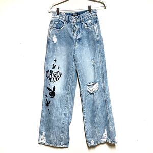 Playboy By PacSun Eco Super Distressed High Waisted Baggy Jeans Sz Size 26