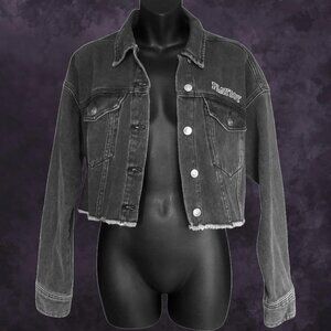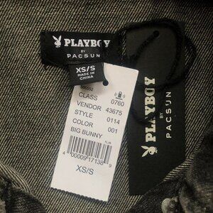 ⊹ ࣪ ˖ limited edition deadstock PLAYBOY PACSUN rhinestone diamante bunny logo cropped crop top denim jean jacket