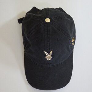 Playboy Lids Black Strapback Hat Cap Cotton Embroidery Metal Bunny Adjustable