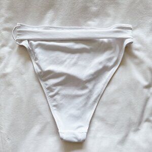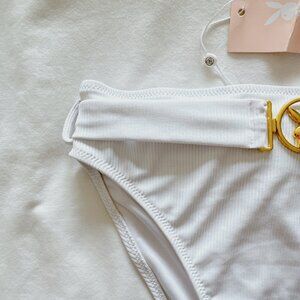 High waist & high cut bikini bottoms. Ribbed white with gold coloured hardware.
