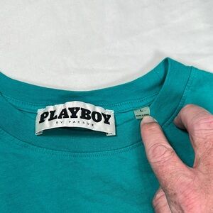 Elevate your style with this Playboy teal long sleeve shirt. Perfect for casual outings, this shirt combines comfort and fashion effortlessly.