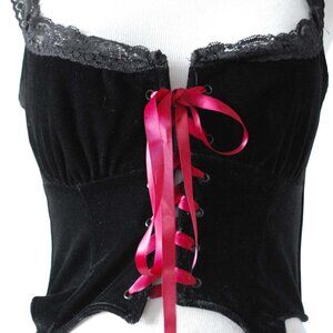 All of the ribbon has been replaced with brand new lace up ribbon and bows - Ribbon coluor is a blood red.