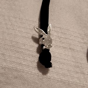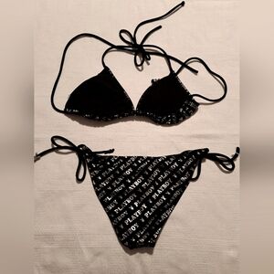 Playboy women's bikini fits size Small & Medium tie up depending on coverage required, plastic bunny logos on the top missing 3 all 4 are on the bottoms, top is padded and are removable, black with silver printing