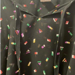 Color: Black with multicolored geometric confetti print