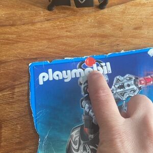 For those that are collectors please note his “horns with red crystal” from helmet is missing and couldn’t find his little sword so my son added a battle axe.