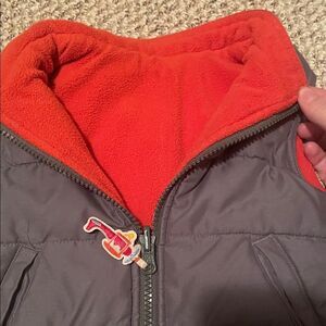 Chic Please Mum vest with charcoal exterior and bright orange lining. Ideal for layering.