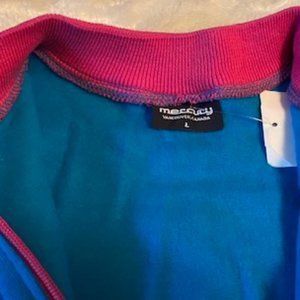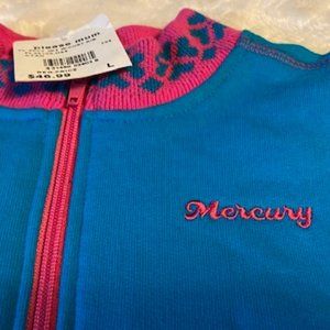 Please Mum Mercury Vintage Blue Sweater Jacket. Full Zipper brand new with tags. Size L. 96% cotton, 4% polyester. Made in Canada. Slight discoloration on back, see last picture. Don't miss out on this comfortable and practical addition to your wardrobe. Colour depends on device/screen settings and lighting in pictures. All measurements are approximate and may slightly vary. Measurements are taken by hand with item laying flat and unstretched. All items are from my smoke free home.