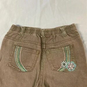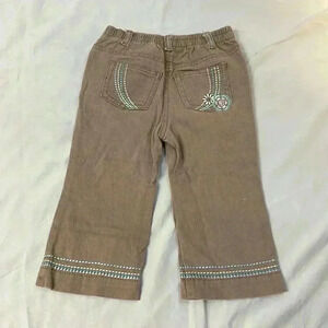 Features: pull up toddler pants with floral embroidered detail, elastic waistband, and front/rear pockets
