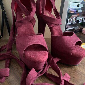 Never worn Pleaser faux-suede heels, Burgundy colour, model Delight-679, original price $125+tx. 6-inch heel height with 1.75in platform (vegan friendly materials).