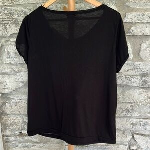 Black T shirt with pleats down front. Perfect for any occasion. Soft material. Very good condition. Never put in dryer.