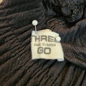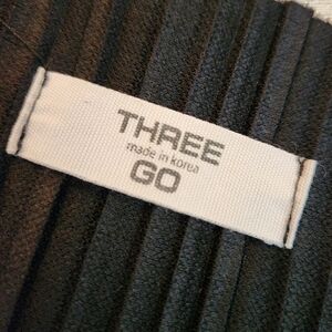 Black Stretch Pleat Sleeveless Tank Blouse and Matching Straight Leg Culotte Pants, by Korean Brand 'Three Go'.