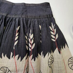 Tri Colors of Black, Red and Cream Pleated Flare Short Skirt in a floral motif