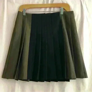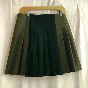 Black and brown pleated mini skirt with hidden back zipper closure.
