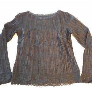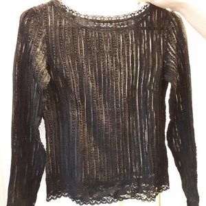 Pleated Semi See Through Top with Lace Lining - black
