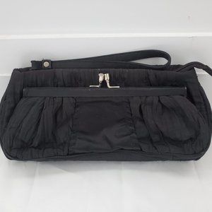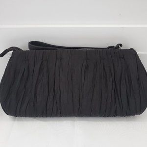 Pleated/Crinkled Satin Evening Wristlet Clutch Black Colour