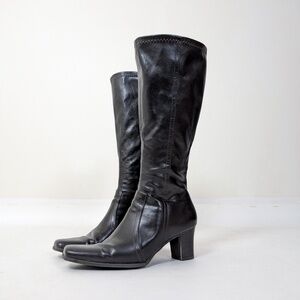 Pleather Calf Boots Square Toe Fitted Tight Faux Leather PVC