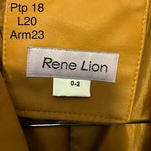 Mustard yellow fau leather jacket size 0 to 2 brand name is Rene Lion. Two functional side pockets, a symmetrical zipper.