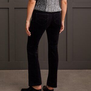 Button and fly front faux leather pant. Straight leg.