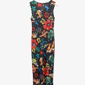 Pleats Please Issey Miyake Hawaii Motif Fringe-Hem Sleeveless Dress, Size XL