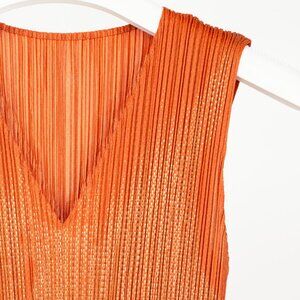 Pleats Please Issey Miyake Orange Metallic-Pattern Sleeveless Maxi Dress