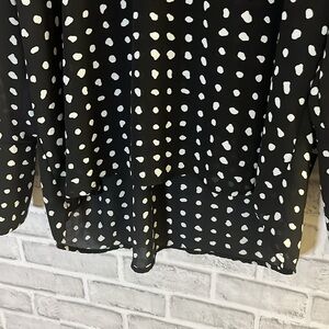 Pleione Long Sleeve Polka Dots Blouse Black White Size L Large, v-neck