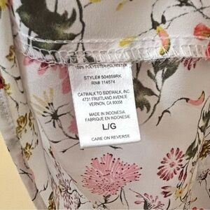 Pretty Pleione from Nordstrom wildflower print cap sleeve top, size large. In good pre-owned condition, laundered and ready to wear. NOTE: close-up photo of fabric pattern added.