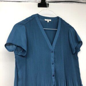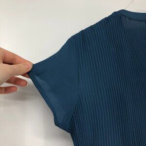 Pleione Plisse Pleated V-neck Blouse In Slate Blue SP