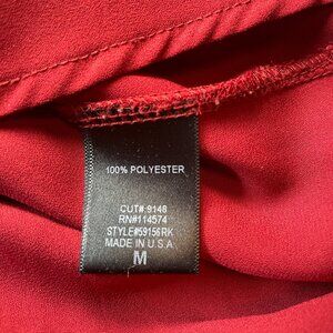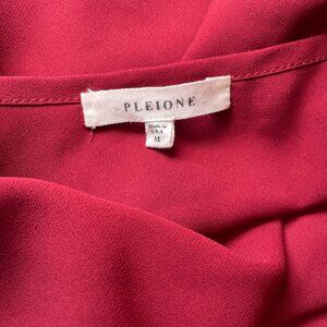 Dark Red Short Sleeve Crew Neck Blouse from Pleione. Lightweight flowing material. Oversized Boho styling. Size Medium. Cuffed sleeves. EUC. No marks, stains, or snags.