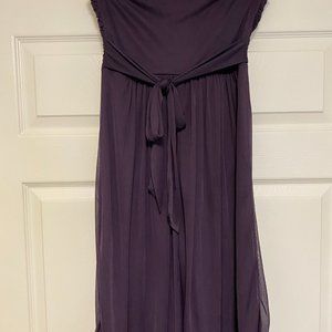 Plum Purple Bridesmaids Dress with Tie Back and Cross Strap