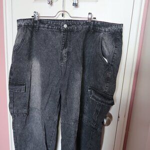 Plus Flap Pocket Side Bleach Wash Jeans 4XL(US 20)