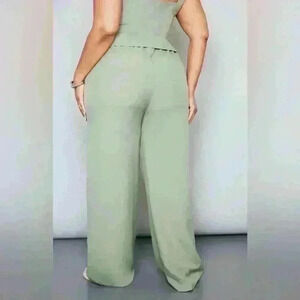 Plus Sage Khaki Ruched Waist Wide Leg Pants Size 14