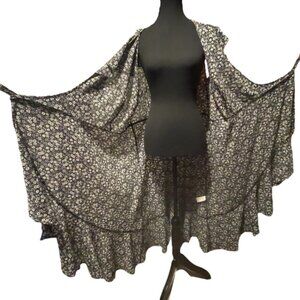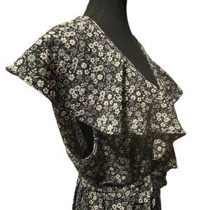 Plus Size Black Floral Flouncy Tiered Wrap Around Dress Tie Ruffles V Neck Sz 2X