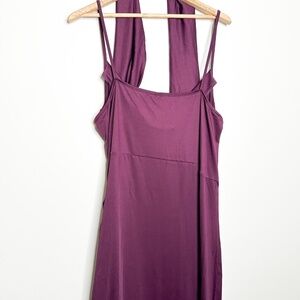 Dress is purple with ruched sides and built in shawl. A really great dress for prom, a wedding, or any fancy outing.