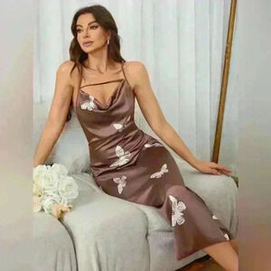 Plus Size Butterfly Colored Satin Night Dress For Women