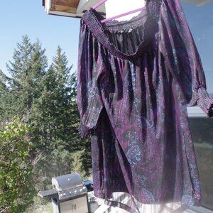 Dress or blouse from Collection Michel Studio Collection size U.S plus 18,in good condition. The color is black ,blue and pink .with sparkles.