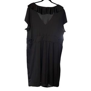 Gently used black short sleeve plus size dress with ruffles. 95% polyester, 5% spandex. Machine wash cold. VGC.