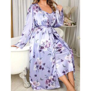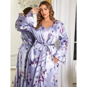 Embrace comfort and elegance with this stunning Plus Size Floral Nightgown & Pajama Set. Crafted from a soft polyester blend, this set offers the perfect combination of style and ease. The floral pattern adds a touch of beauty, while the suspender design enhances the overall allure. Ideal for all seasons, this robe set is machine washable for your convenience.