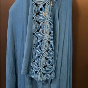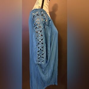 Elegant blue top by George. Ideal for everyday wear. Please see photos for condition. Minor wear on front chest of shirt. Item sold as-is condition. All items washed and packaged before shipping.