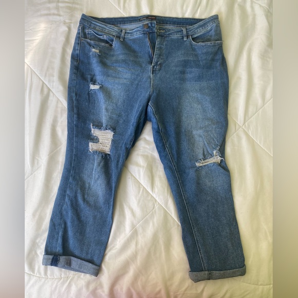 High rise slim straight jeans. Plus size 24. Lightly worn a handful of times. No stains or unintentional rips.