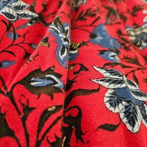 This lovely red dress with floral pattern has a great circle skirt that could be worn with a petticoat. Really great quality, well constructed and comfortable. It even has pockets!