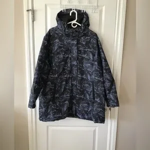 Plus size windbreaker style winter/spring jacket. With removable hood, extra pockets for cell phones and a windproof and rainproof material. In excellent near new condition.