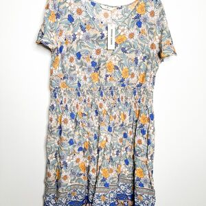 Plus Size Summer Floral Boho Classy Smocked Midi Dress 1X