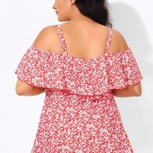 Red and White Off-the-shoulder floral Women's One Piece Swimsuit/Swim dress