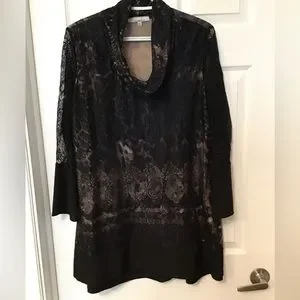 Women’s dressy long sleeve top with a lace overlay on the front in excellent used condition