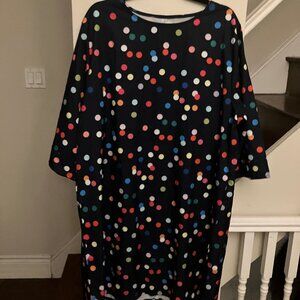 No tag. Material is a rayon or nylon. Print is bright and fun! B 24 W 26 H 28 L 40